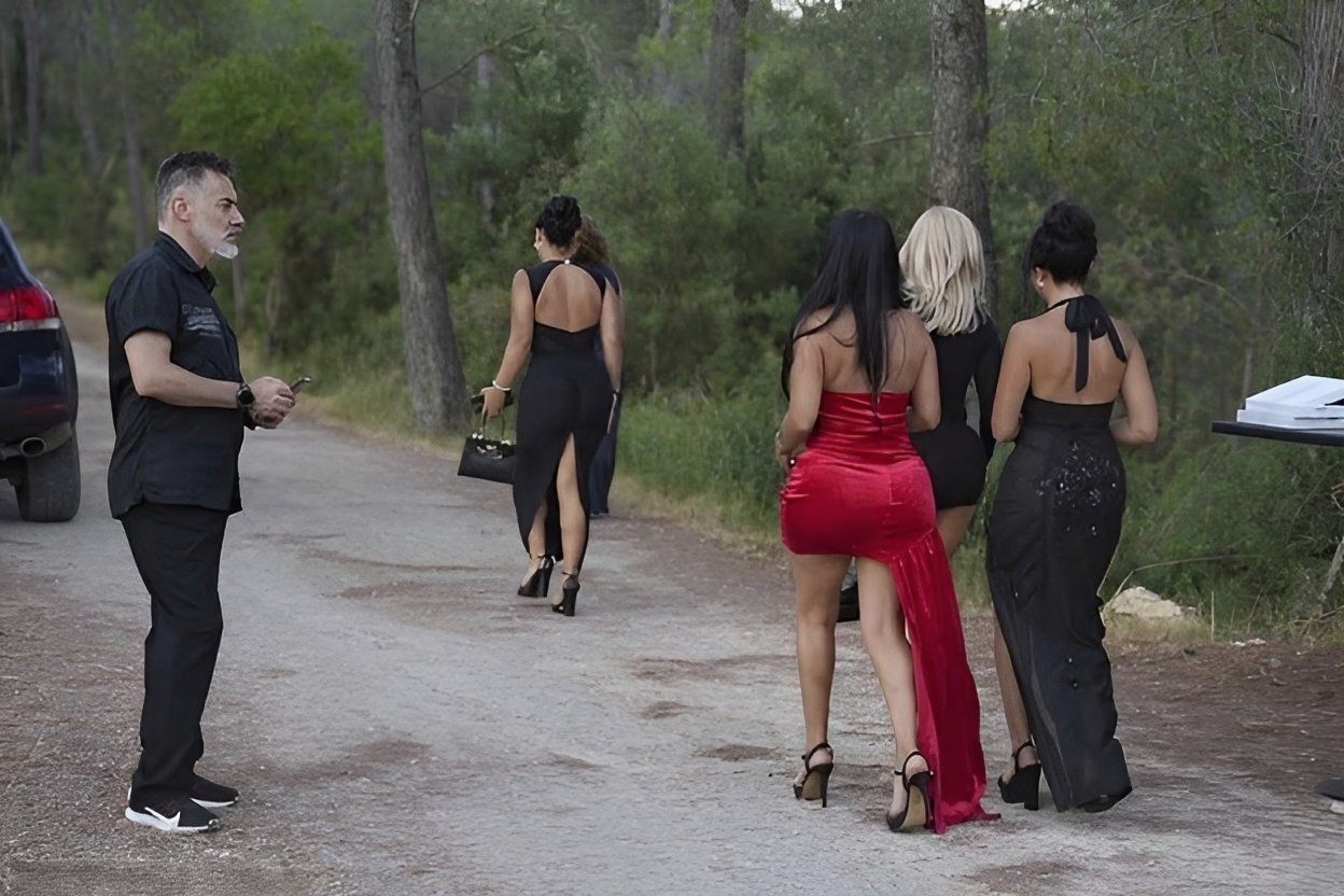 Ранее в этом же месте были запечатлены несколько женщин в откровенных нарядах, направлявшихся к залу, где проходило празднование.