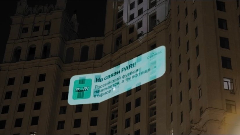 К старту нового сезона РПЛ PARI приготовила креативное напоминание для заработавшихся москвичей. На офисных зданиях столицы появились проекции push-уведомлений с оповещением о старте чемпионата России.