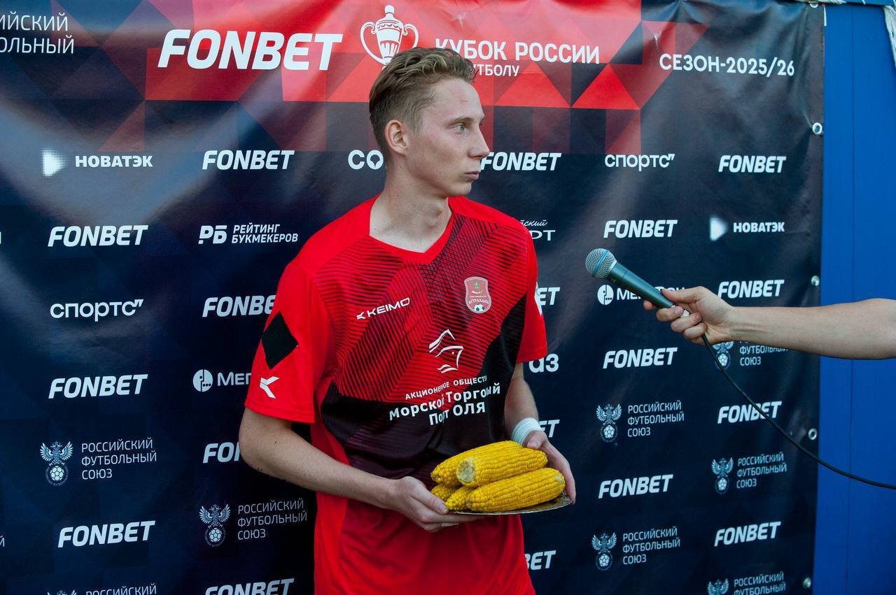 Защитник «Астрахани» Арсений Абзалилов получил кукурузу в качестве приза лучшему игроку матча второго раунда Пути регионов Фонбет Кубка России против «Победы» из Хасавюрта. 21-летний фулбек помог своей команде обыграть соперников со счётом 1:0, проведя на поле все 90 минут.