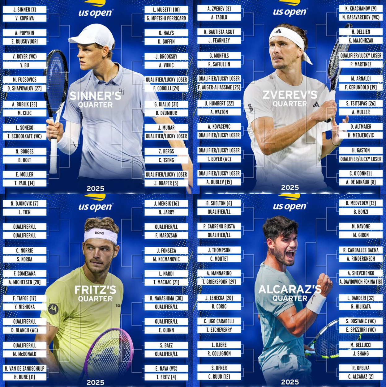 - US Open 2025 проходит в Нью-Йорке с 19 августа по 7 сентября на открытых хардовых кортах Национального теннисного центра имени Билли Джин Кинг. Основной турнир стартует 24 августа.