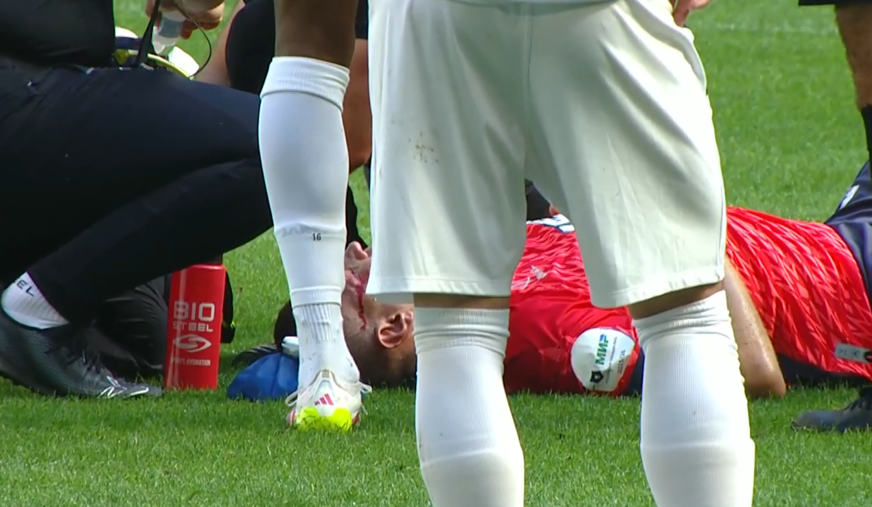 Дзюба получил повреждение на 6-й минуте в результате единоборства с защитником гостей Кевином Андраде. Форварду оказали медицинскую помощь и перебинтовали голову.