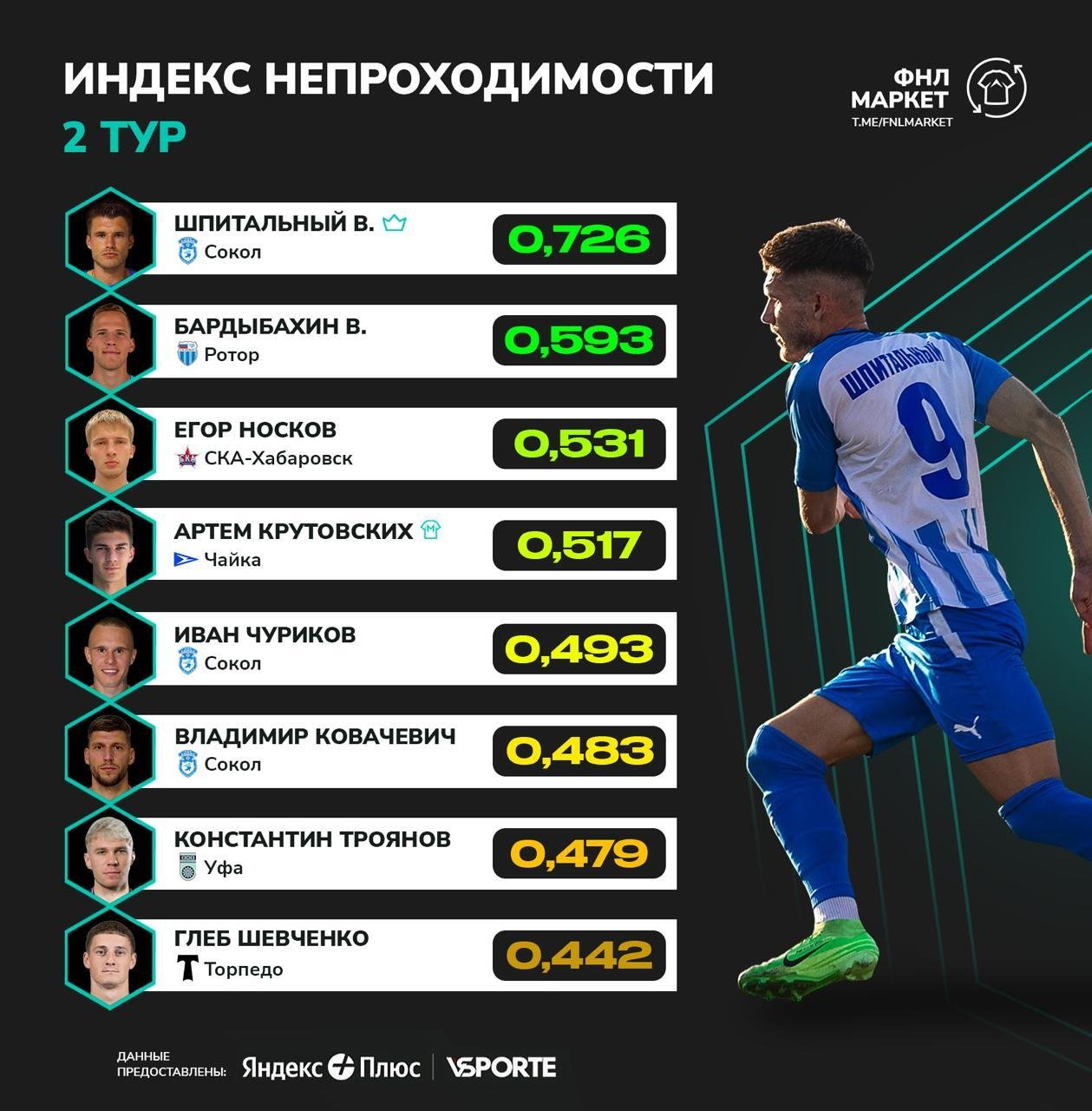 Полузащитник саратовского «Сокола» Владислав Шпитальный возглавил рейтинг лучших футболистов по индексу непроходимости после второго тура Лиги PARI. Об этом сообщил телеграм-канал «ФНЛ Маркет».
