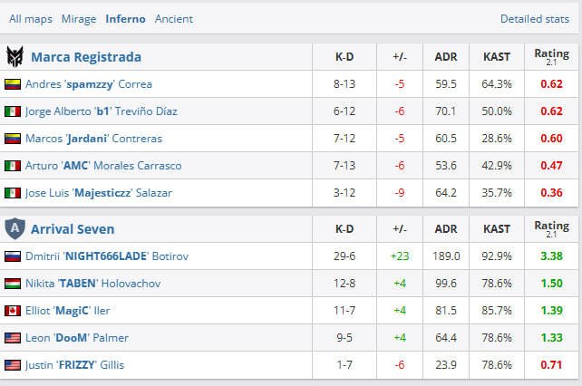 Российский игрок Arrival Seven Дмитрий NIGHT666LADE Ботиров побил рекорд портала HLTV.org по рейтингу за одну карту.