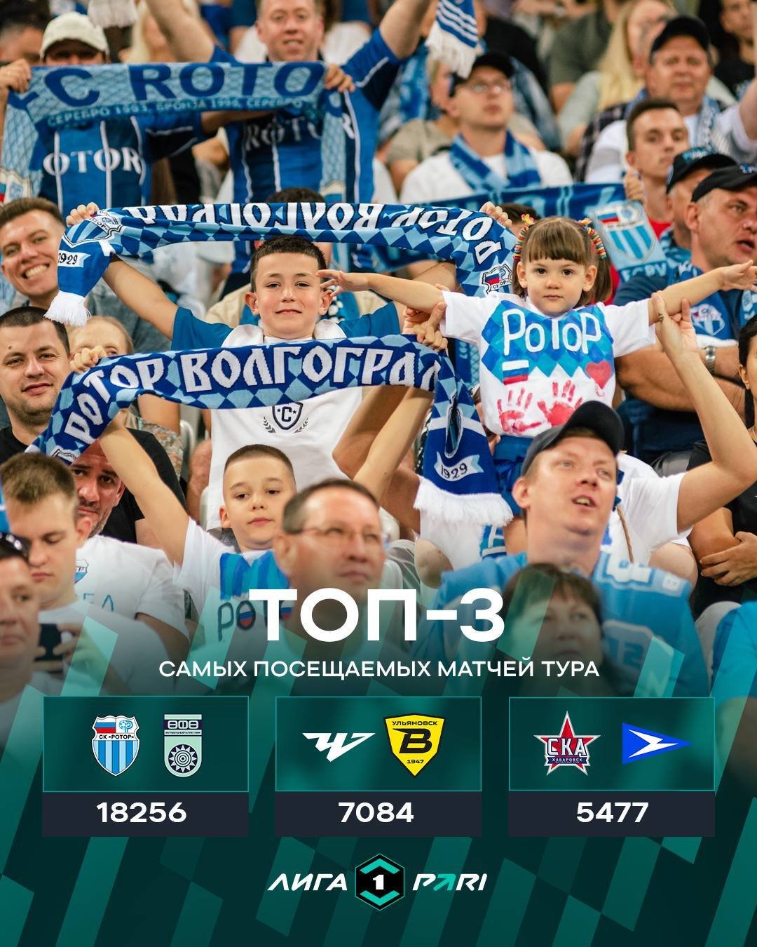 Первое место заняла встреча «Ротора» с «Уфой» (1:0) в Волгограде, на которую пришло 18 256 зрителей.