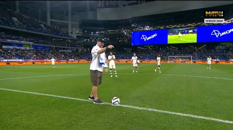 Рекордсмен НХЛ по голам в регулярных чемпионатах и игрок «Вашингтон Кэпиталс» Александр Овечкин нанёс символический удар перед матчем второго тура группового этапа Пути РПЛ Фонбет Кубка России между московским «Динамо» и «Краснодаром».