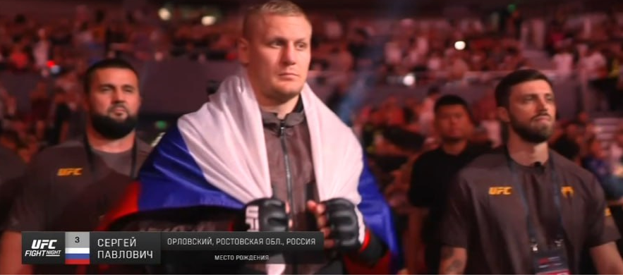 Бывший претендент на временный чемпионский титул в тяжёлом дивизионе UFC Сергей Павлович вышел на бой с доминиканцем Вальдо Кортесом-Акостой с российским флагом на плечах.