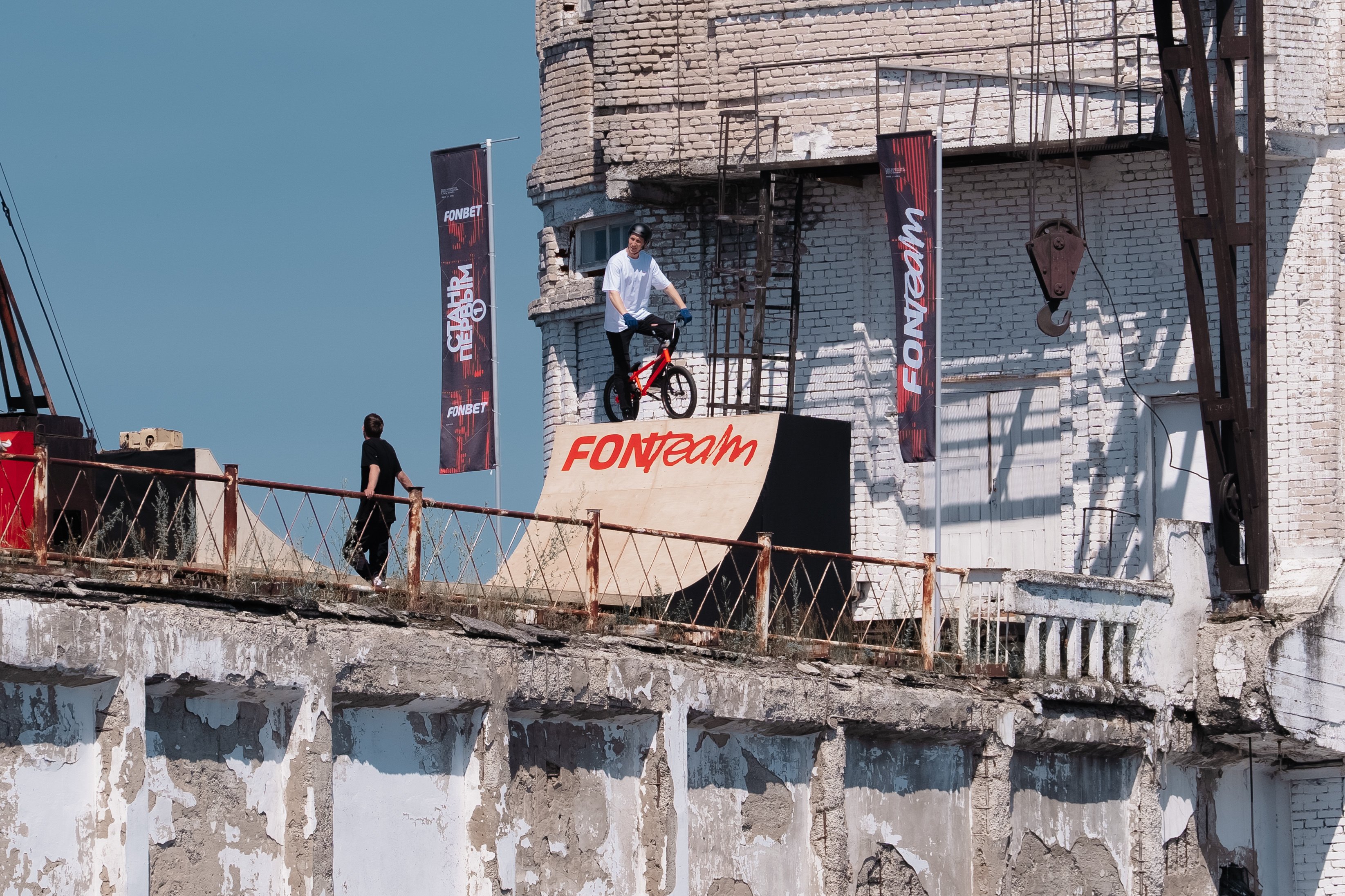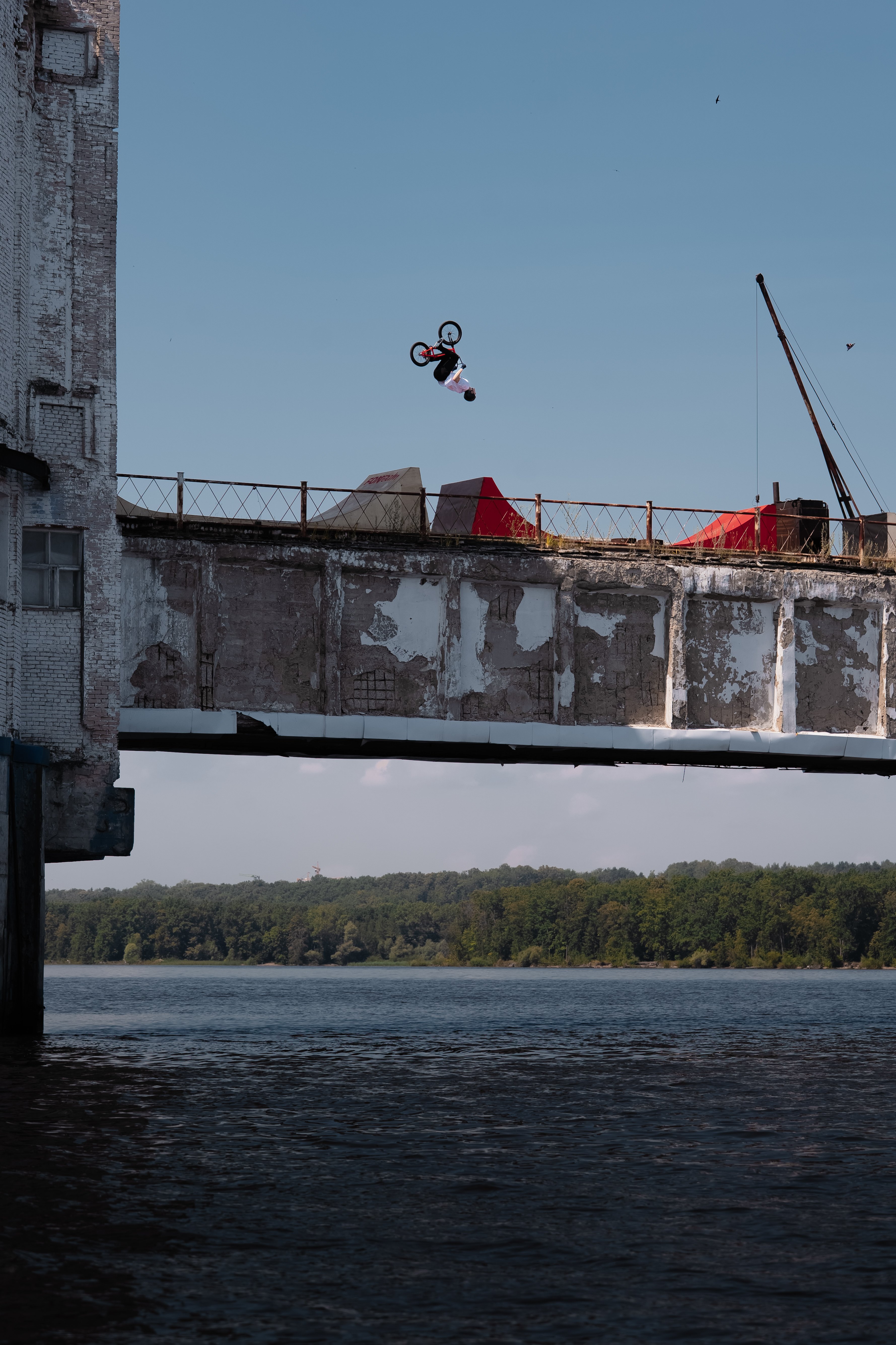 Всего было создано три участка трассы. Первый представлял собой линию из трех фигур, требующих от спортсмена идеального контроля над велосипедом. Вторая станция состояла из одной фигуры, установленной на краю мостика, возвышающегося на 15 метров над поверхностью реки. Здесь от спортсмена требовалась смелость и идеальная техника выполнения сальто. Третий и самый опасный участок находился прямо на вершине водонапорной башни и требовал от спортсмена максимального фокуса и демонстрации высочайшего уровня мастерства.