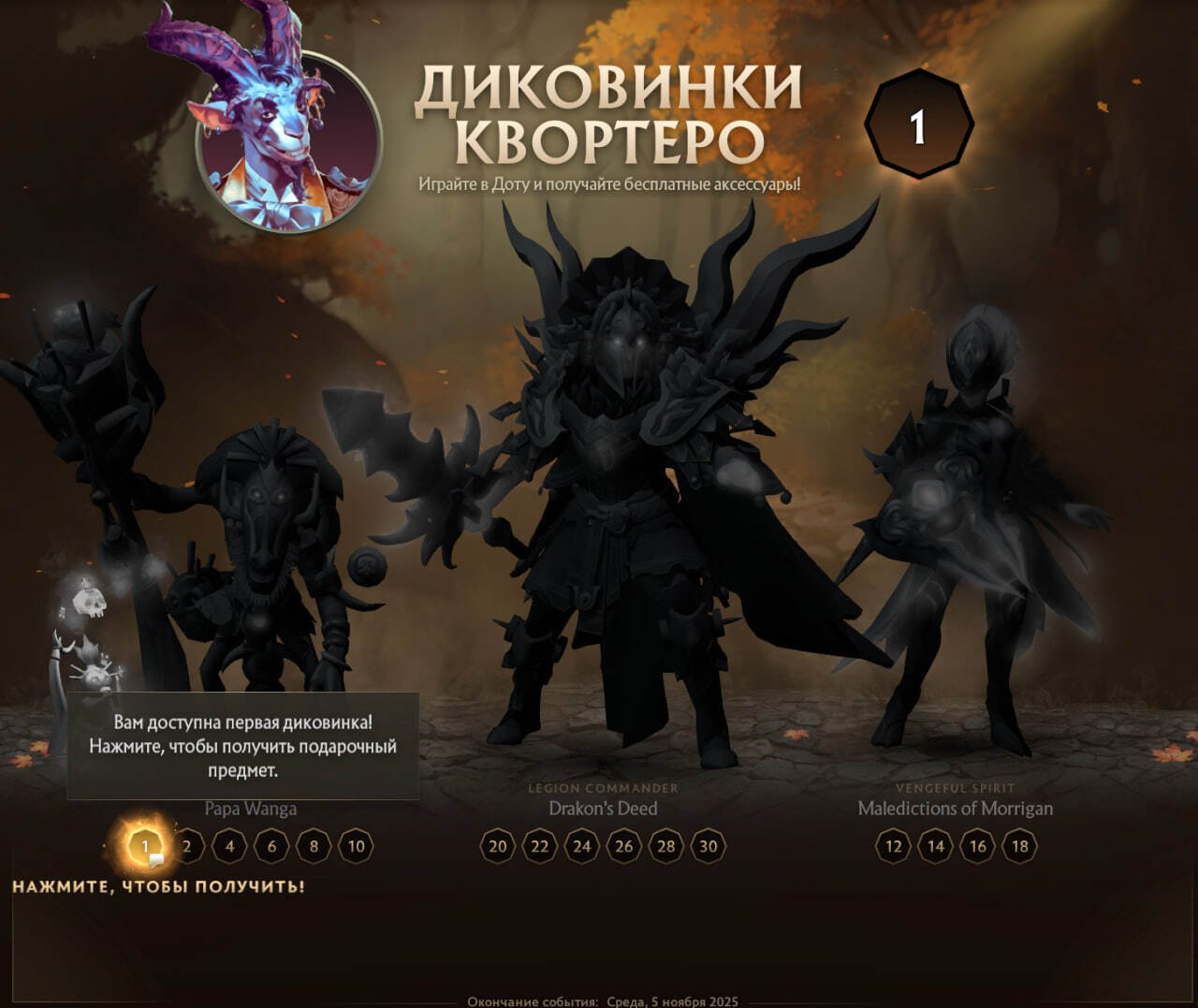 Помимо патча разработчики выпустили обновление «Диковинки Квортеро», в рамках которого в главном меню появится персонаж Квортеро, который будет раздавать игрокам бесплатные аксессуары. Ивент продлится до 5 ноября. Для получения наград нужно играть в Dota 2 и получать опыт для прокачки уровней: победа даёт 650 опыта, поражение — 250. В Turbo: 425 и 175 опыта соответственно.