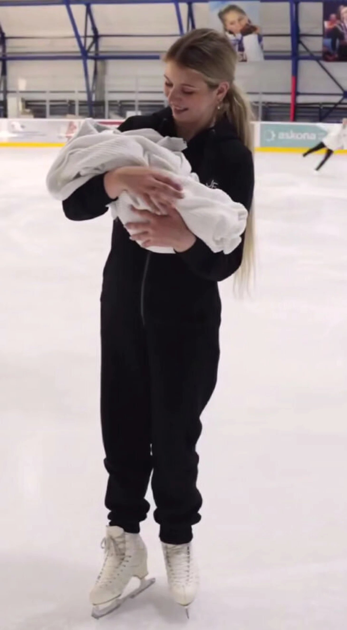 Серебряный призёр Олимпийских игр в женском одиночном катании Александра Трусова вышла на лёд с новорождённым сыном. Фигуристка опубликовала видео с катка в социальных сетях.