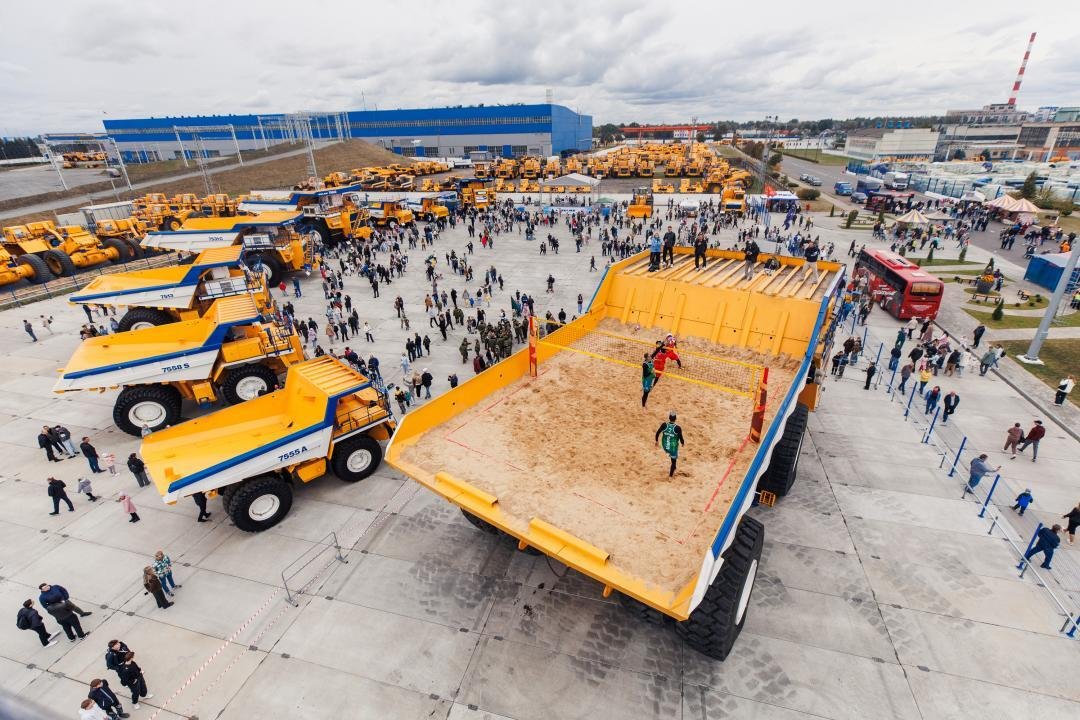 Звёзды пляжного волейбола впервые в истории сыграли в кузове самого большого карьерного самосвала в мире — 450-тонного «БелАЗа-75711», на высоте трёх этажей.