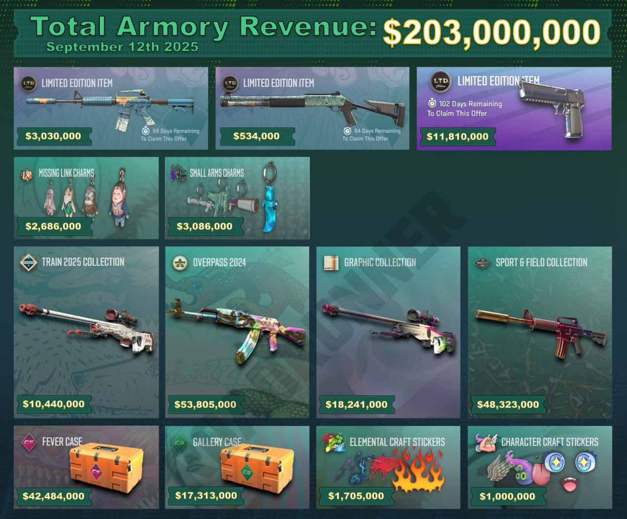 Разработчики Counter-Strike 2 объявили о скором изменений контента в разделе «Арсенал», после того как Valve удалось заработать более 200 миллионов долларов только на пропуске.