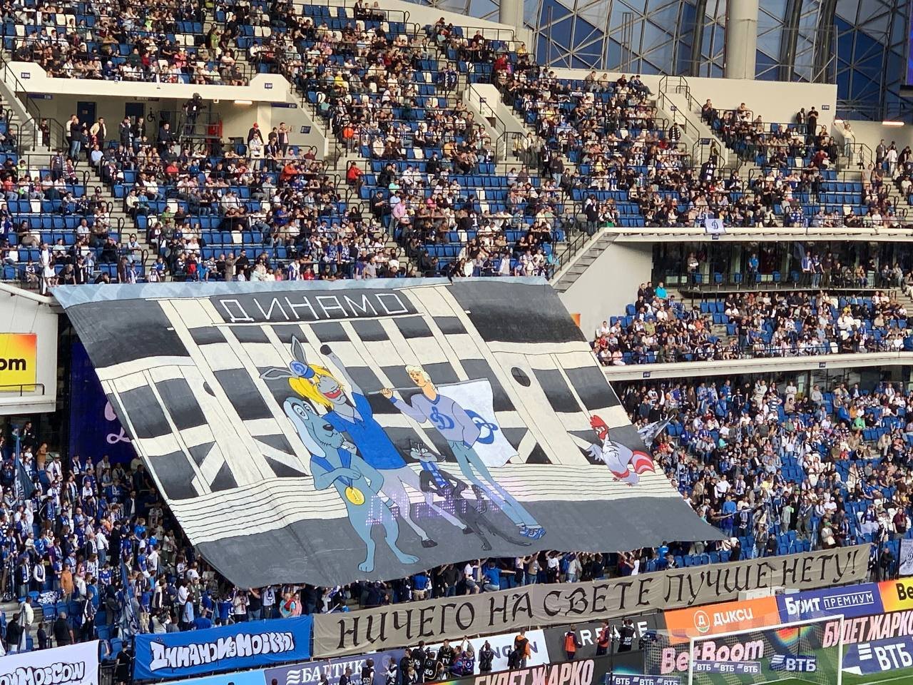 Болельщики московского «Динамо» потроллили «Спартак» перед матчем восьмого тура МИР Российской Премьер-Лиги (РПЛ). Фанаты бело-голубых вывесили баннер с персонажами мультфильма «Бременские музыканты», на котором Петух изображён в красно-белых цветах и стоит в стороне от других героев.