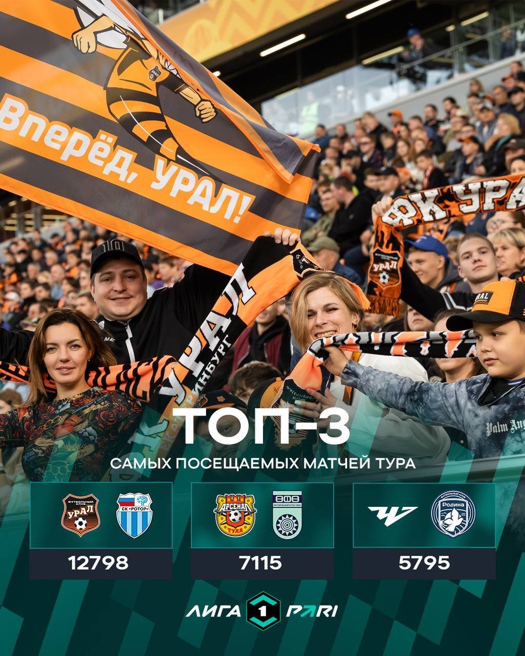 Первое место заняла встреча «Урала» с волгоградским «Ротором» (0:0) в Екатеринбурге, на которую пришло 12 798 зрителей.