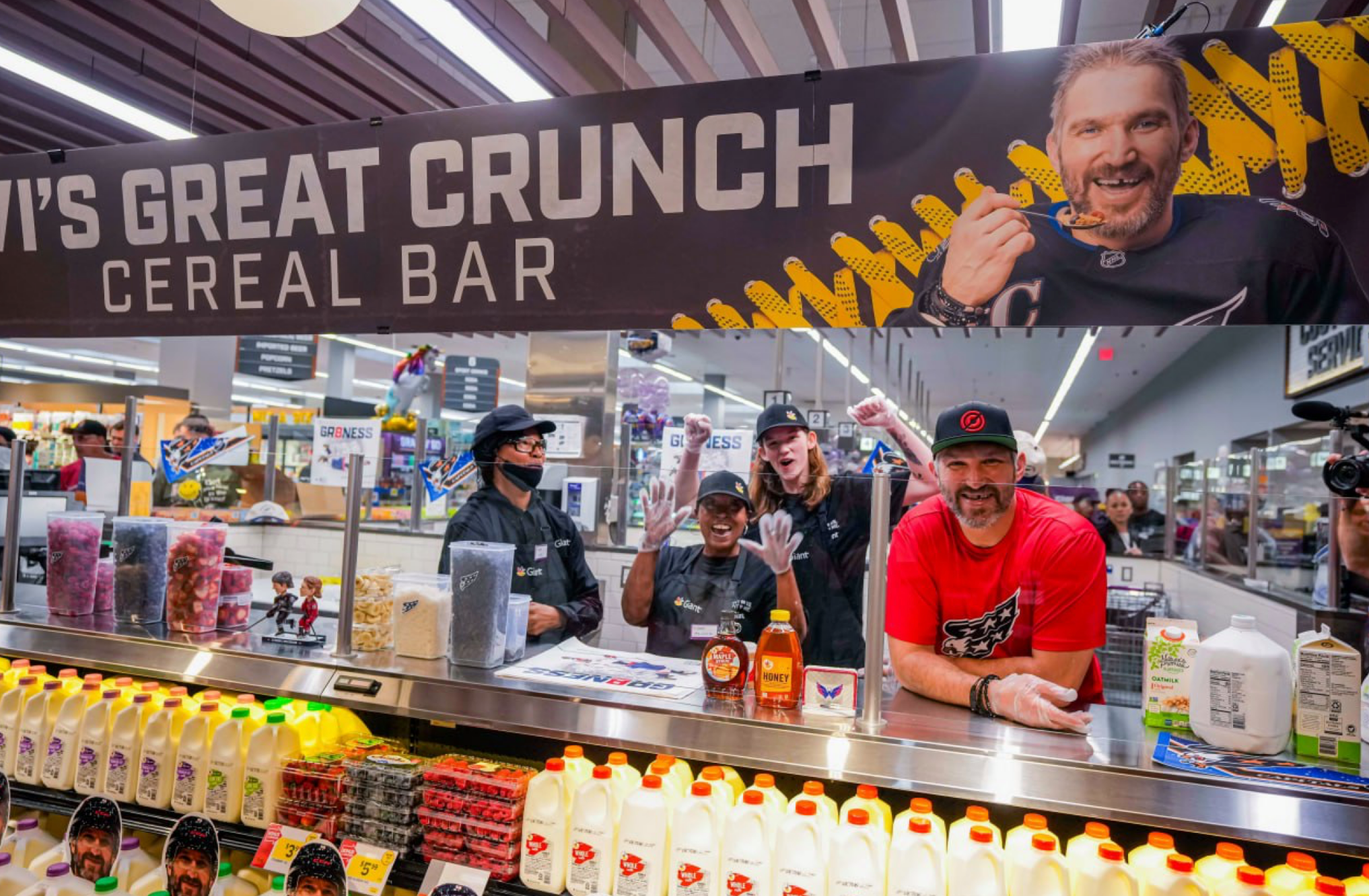 Российский нападающий и капитан «Вашингтона» Александр Овечкин представил собственную линейку сухих завтраков под названием Great Crunch. В рамках промо-акции хоккеист выступил в роли работника бара, угощая желающих хлопьями с молоком.