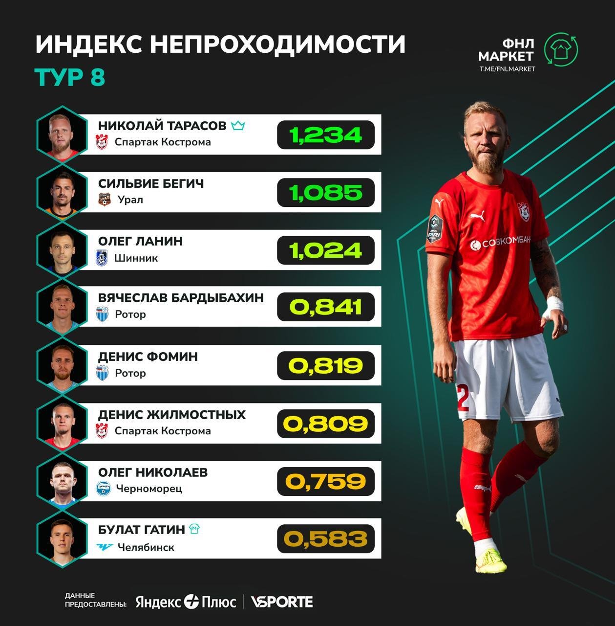 Футбольная национальная лига (ФНЛ) опубликовала рейтинг игроков Лиги PARI по индексу непроходимости после 8-го тура.