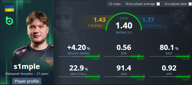 S1mple опережает kyousuke в ключевых статистических показателях HLTV