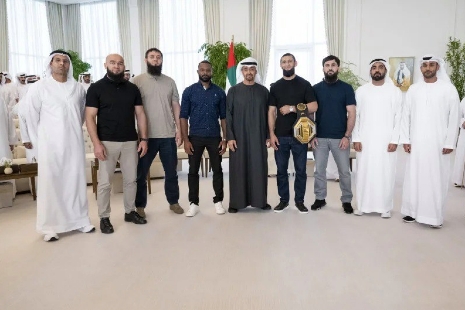 Президент Объединённых Арабских Эмиратов шейх Мохаммед ибн Заид Аль Нахайян встретился с Хамзатом Чимаевым, который в августе стал чемпионом UFC в среднем весе после победы над Дрикусом Дю Плесси на турнире UFC 319 в Чикаго.