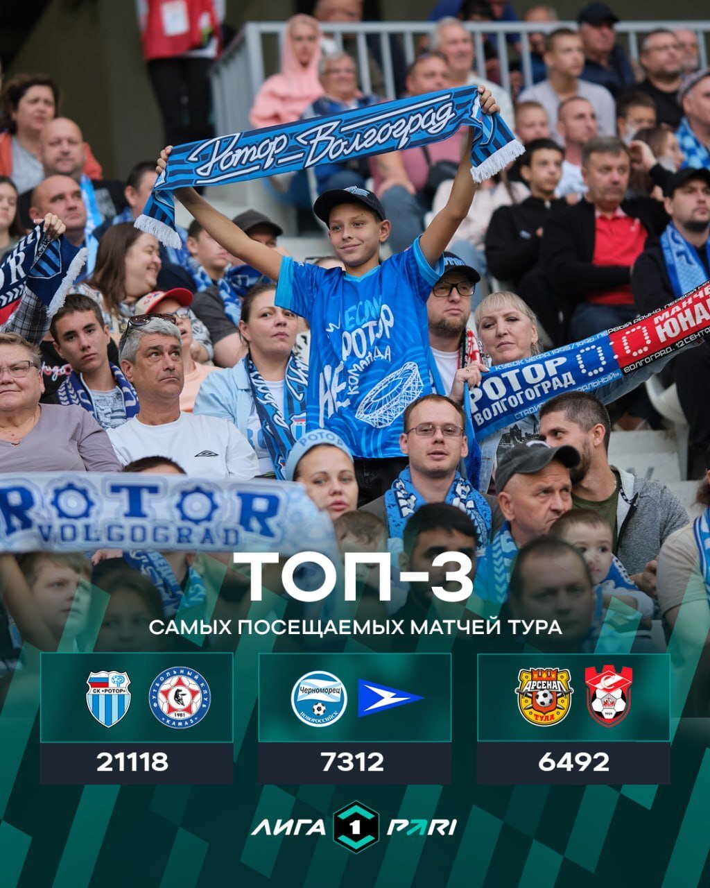 Первое место заняла встреча «Ротора» с челнинским «КАМАЗом» (3:0) в Волгограде, на которую пришла 21 118 зрителей.
