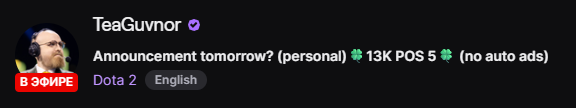 TeaGuvnor запустил стрим в преддверии патча 7.40