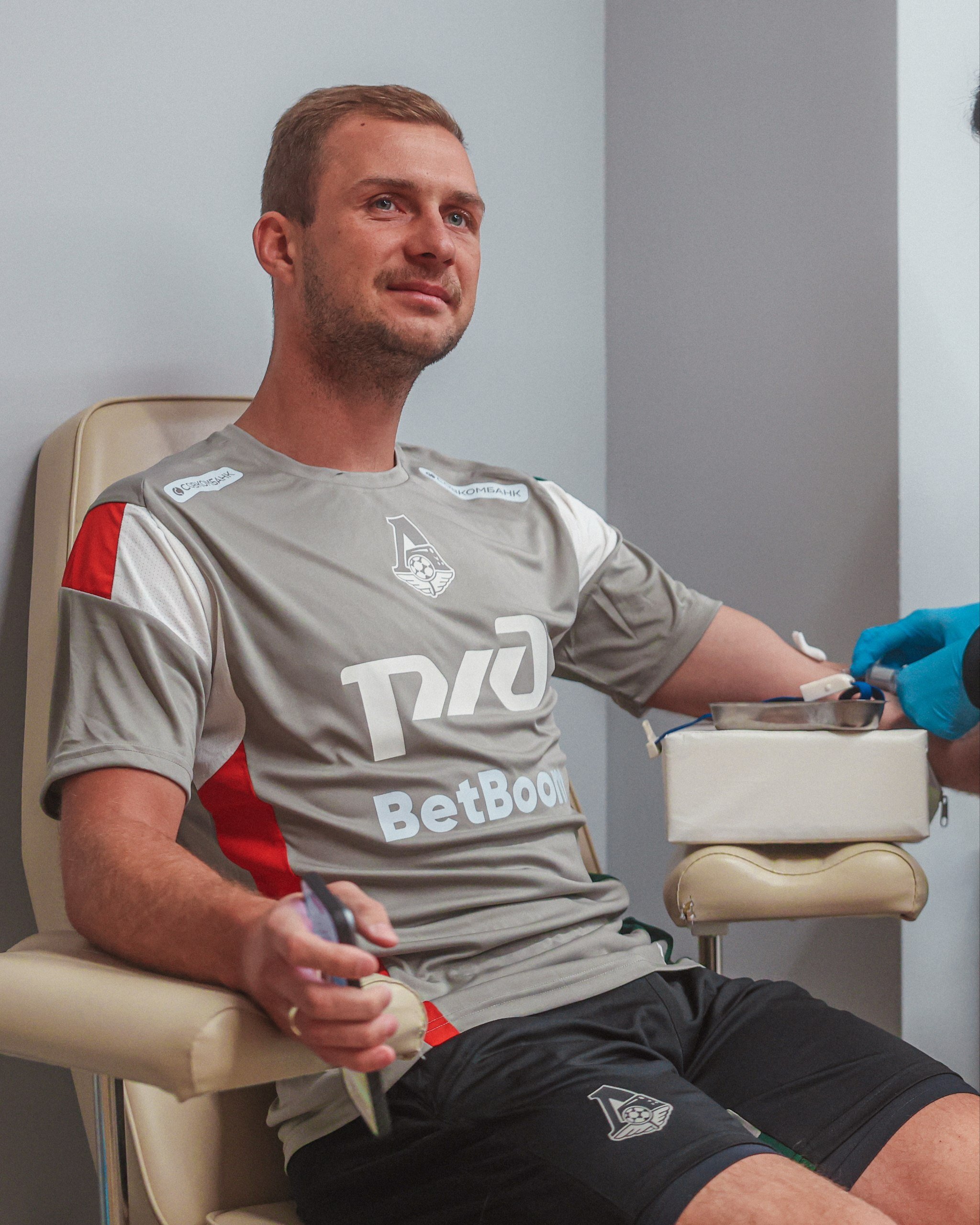 Полузащитник и капитан московского «Локомотива» Дмитрий Баринов проходит плановый медицинский осмотр в одной из столичных клиник вместе с остальными игроками красно-зелёных. Пресс-служба железнодорожников выложила в соцсетях фотографию футболиста, у которого берут кровь.