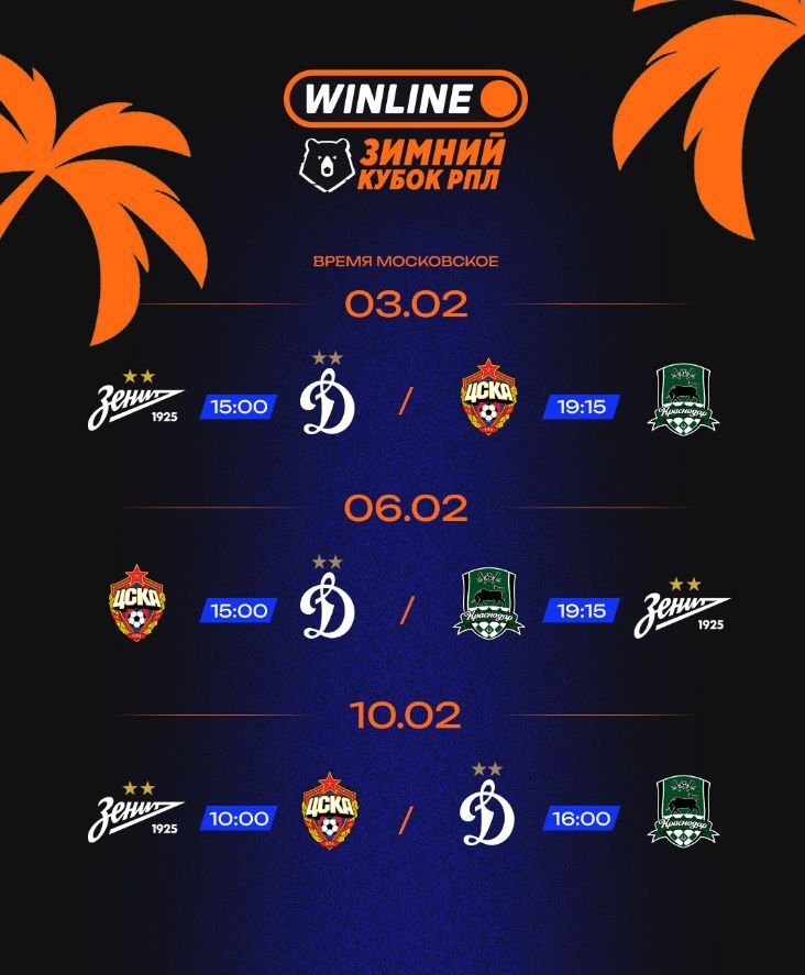 - WINLINE Зимний кубок РПЛ проходит с 2023 года. На первых двух турнирах побеждал «Спартак», в 2025-м турнир выиграл «Зенит».