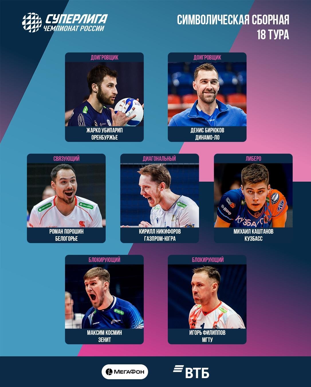 Пресс-служба мужской PARI Суперлиги представила символическую сборную 18-го тура предварительного этапа чемпионата. Связующий «Белогорья» Роман Порошин во второй раз подряд был включён в состав команды лучших игроков тура.
