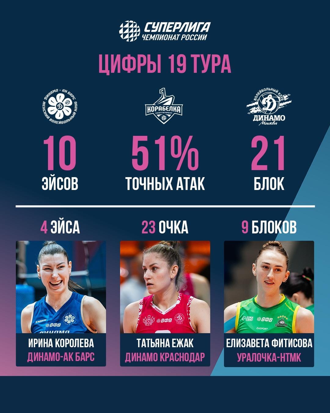 Ирина Королёва — лидер 19-го тура женской Суперлиги по эйсам