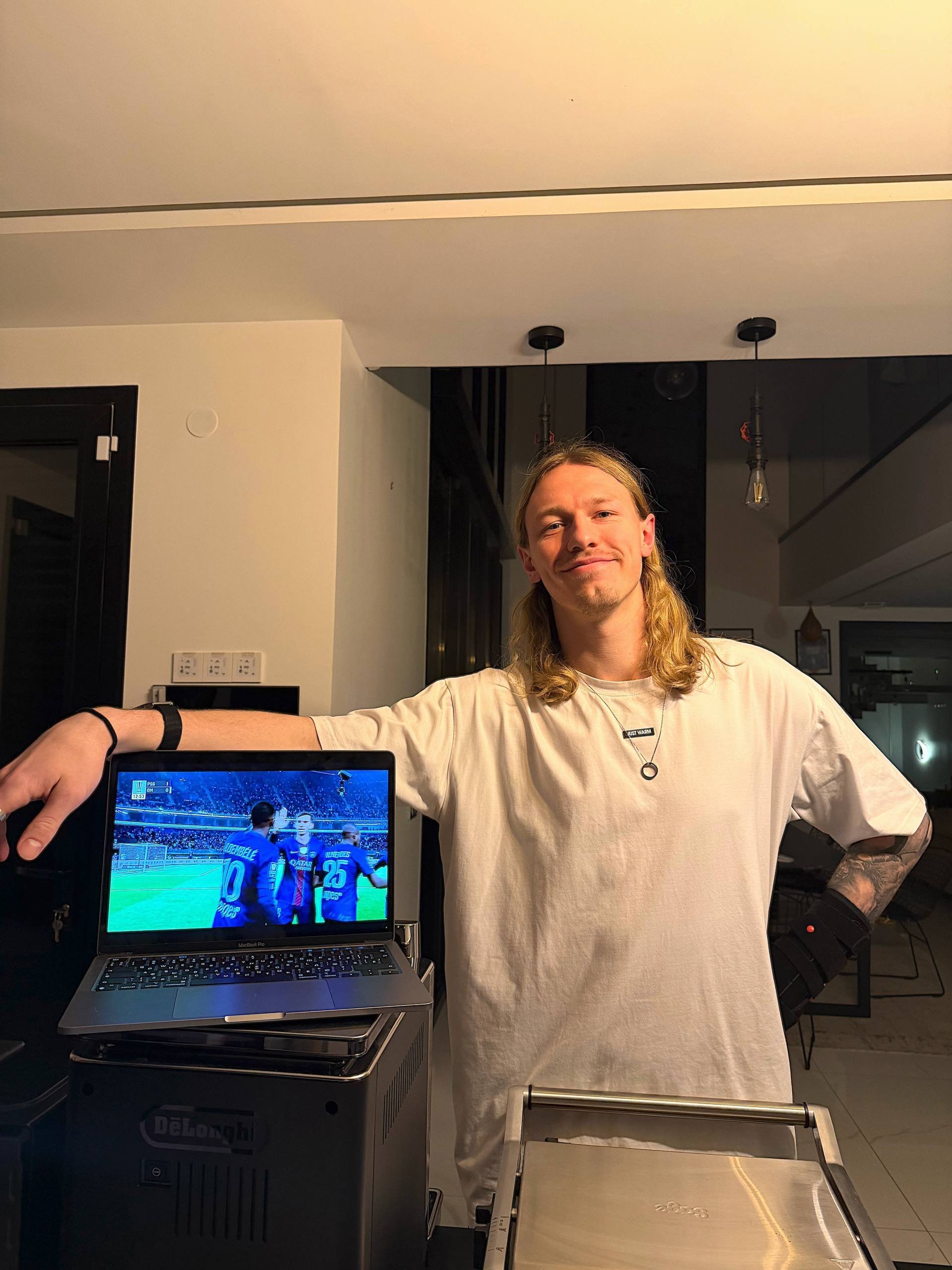 Российский вратарь «ПСЖ» Матвей Сафонов следит за игрой команды в финале Суперкубка Франции из дома. Футболист поделился фото в соцсетях.