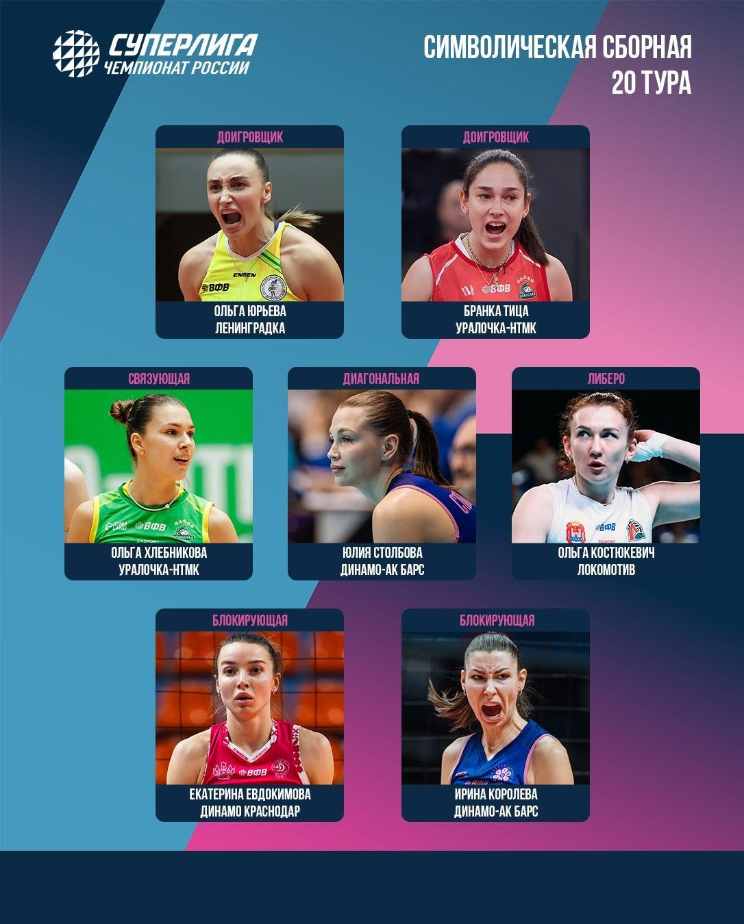 Королёва и Тица вошли в символическую сборную 20-го тура женской Суперлиги