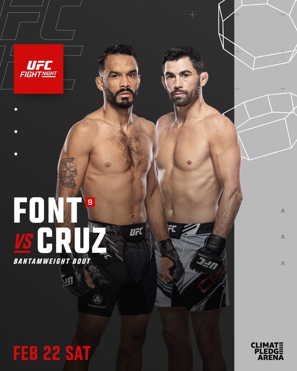 В со-главном поединке пройдёт бой в легчайшем весе между американцем Робом Фонтом и бывшим обладателем титула UFC в категории до 61 кг соотечественником Домиником Крузом.