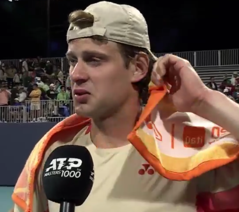 51-я ракетка мира бельгийский теннисист Зизу Бергс расплакался во время интервью на корте после победы над россиянином Андреем Рублёвым (9) во втором круге «Мастерса» в Майами.