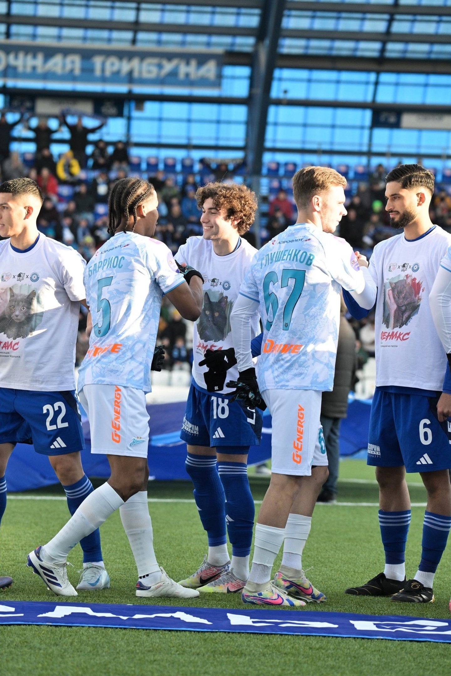 Футболисты «Оренбурга» вышли на открытие матча РПЛ с «Зенитом» в футболках с изображением подопечных приюта. Все, кто заберут домой кошек и собак из «Филимоши», получат подарки от футбольного клуба «Оренбург» и букмекерской компании Леон.