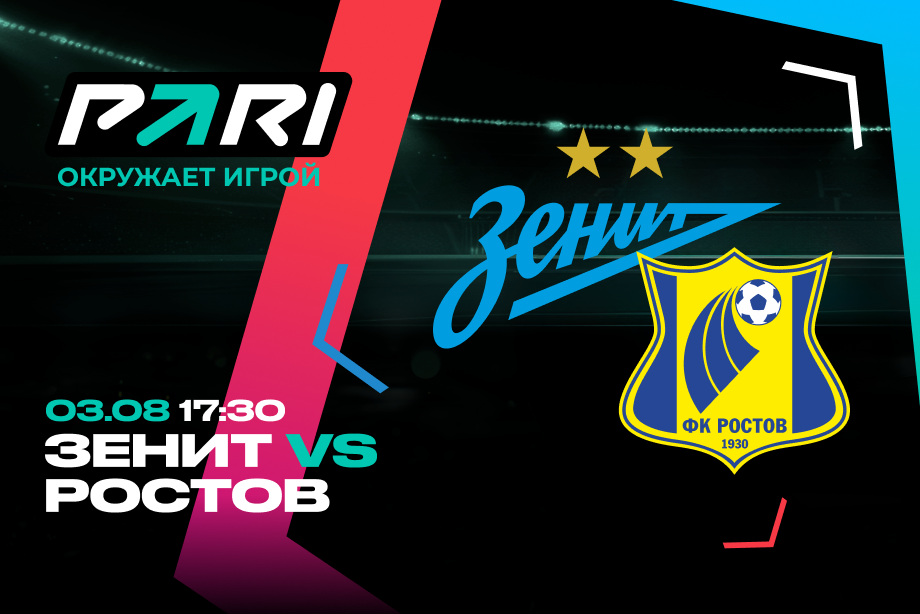 3 августа в центральном матче третьего тура Российской Премьер-лиги «Зенит» примет «Ростов». Встреча состоится на стадионе «Газпром Арена» в Санкт-Петербурге и начнется в 17:30 по московскому времени. Аналитики букмекерской компании PARI изучили шансы соперников и рассказали о ставках клиентов на предстоящее топ-событие.