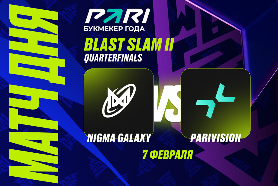 7 февраля на турнире BLAST Slam II по Dota 2 определятся последние полуфиналисты. В первом четвертьфинале сойдутся PARIVISION и Nigma Galaxy. Коллективы уже встречались на групповом этапе — тогда ростер SumaiL оказался сильнее. Аналитики букмекерской компании PARI полагают, что PARIVISION сможет взять реванш у соперника и пройдет в следующий этап. Серия в формате best-of-3 стартует в 18:00 по московскому времени.
