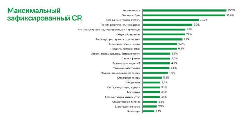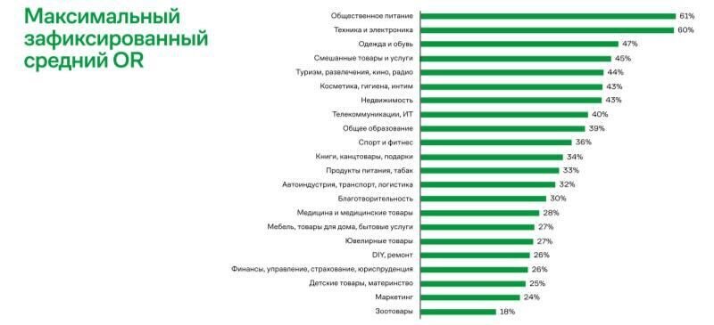 Для оценки эффективности были взяты 4 основных показателя: CTR (уникальность кликов от открытий), Open Rate (уникальность кликов от доставленных сообщений), UTOR (клики на отписку) и Click Rate (OR минус UTOR). Авторы исследования также разделили компании по категориям: в частности, в разделе «спорт и фитнес» приведены следующие результаты (медианный и максимальный показатели):