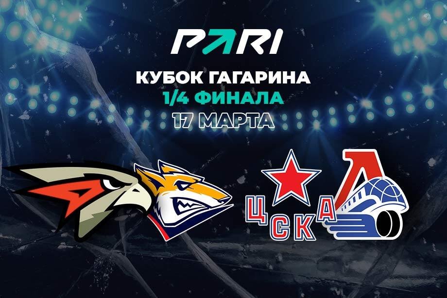 17 марта, в пятницу, в ½ финала Кубка Гагарина (или ¼ финала в целом) «Авангард» сыграет с «Металлургом» в матче Восточной конференции, а ЦСКА встретится с «Локомотивом» на Западе. Первая встреча пройдет в Омске и начнется в 16:30 по московскому времени. Вторая стартует в Москве в 19:30. Букмекерская компания PARI оценила шансы соперников и рассказала, как ставят клиенты на предстоящие встречи.