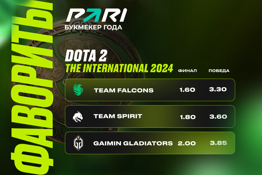 PARI: Falcons, Spirit и Gladiators — главные фавориты The International 2024 по Dota 2