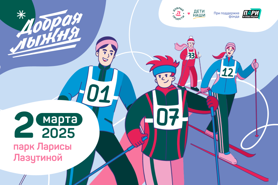 Благотворительный фонд «Пари и побеждай» выступит генеральным партнером «Доброй лыжни», которая объединит всех любителей спорта вне зависимости от их возраста и уровня подготовки. Соревнования по беговым лыжам пройдут 2 марта в Одинцовском парке культуры, спорта и отдыха имени Ларисы Лазутиной. Все собранные во время мероприятия средства пойдут подопечным фонда «Дети наши», который помогает семьям в сложной ситуации и детям без родителей.