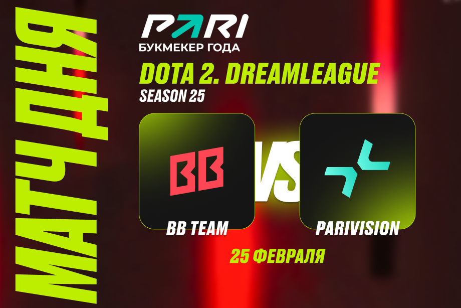 25 февраля на турнире DreamLeague Season 25 по Dota 2 состоится СНГ-дерби. В рамках матча пятого круга группового этапа сойдутся PARIVISION и BB Team. Аналитики букмекерской компании PARI полагают, что состав Satanic — фаворит поединка. Серия в формате best-of-3 стартует в 16:30 по московскому времени.