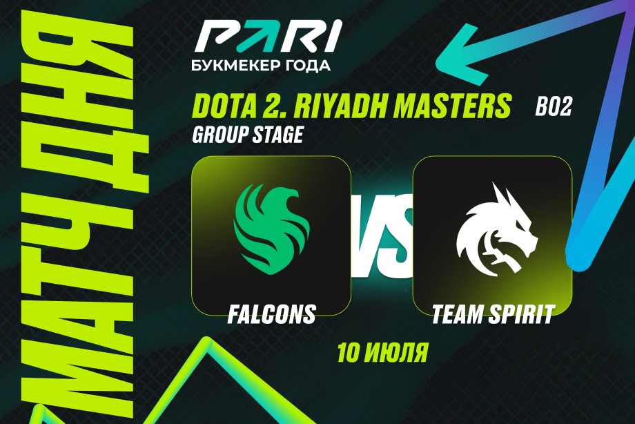 10 июля стартует групповая стадия главного турнира лета по Dota 2 — Riyadh Masters 2024. Откроет этот этап встреча двух главных фаворитов чемпионата — Team Spirit и Team Falcons. Обе команды подошли к ивенту в хорошей форме и после череды удачных турниров. Аналитики букмекерской компании PARI полагают, что коллективы не смогут выявить победителя в очном поединке. Серия в формате best-of-2 стартует в 15:30 по московскому времени.