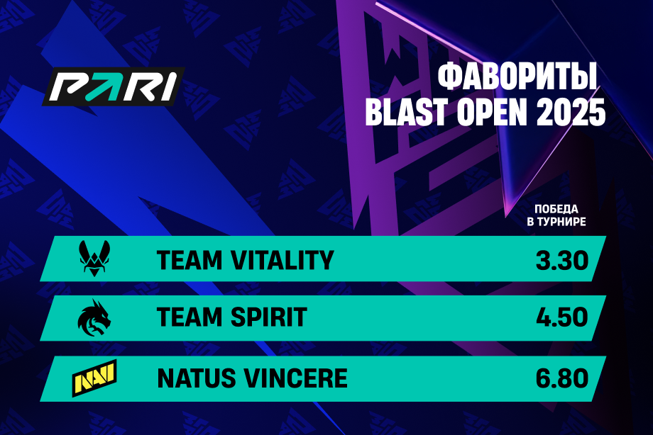 19 марта в Лиссабоне стартует турнир BLAST Open Spring 2025 по Counter-Strike 2. На ивенте выступят все топ-команды мира из рейтинга Valve. Букмекерская компания PARI открыла линию на победителя чемпионата. По оценкам аналитиков, главными фаворитами BLAST Open Spring 2025 считаются Team Vitality, Team Spirit и Natus Vincere.