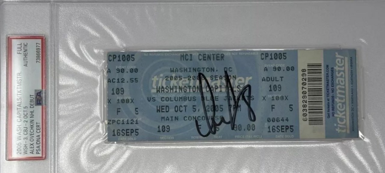 Билет с дебютной игры Овечкина в НХЛ продали на аукционе
