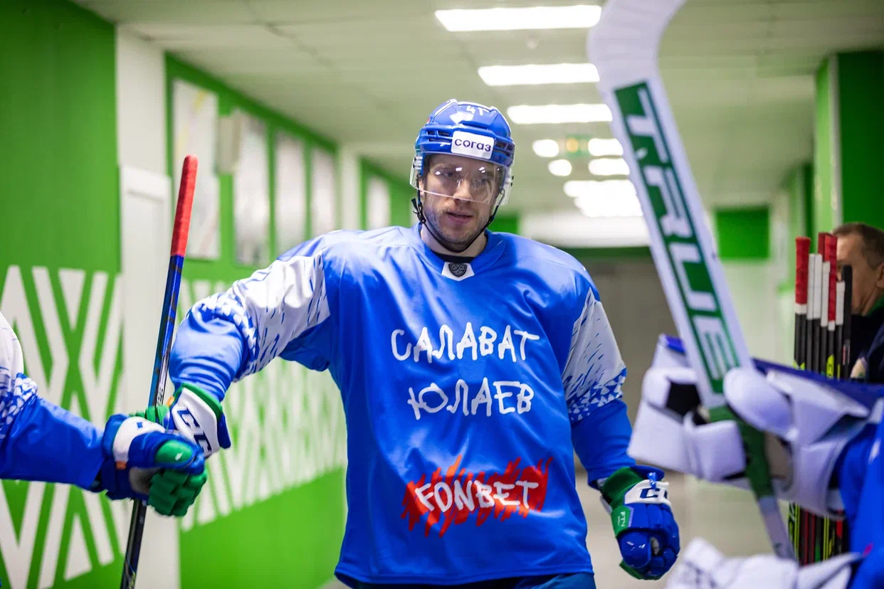 Во время раскатки перед матчем «Салават Юлаев» - «Металлург» хоккеисты башкирского клуба вышли на лед в форме с Доброшрифтом. Таким шрифтом пишут дети с диагнозом ДЦП.