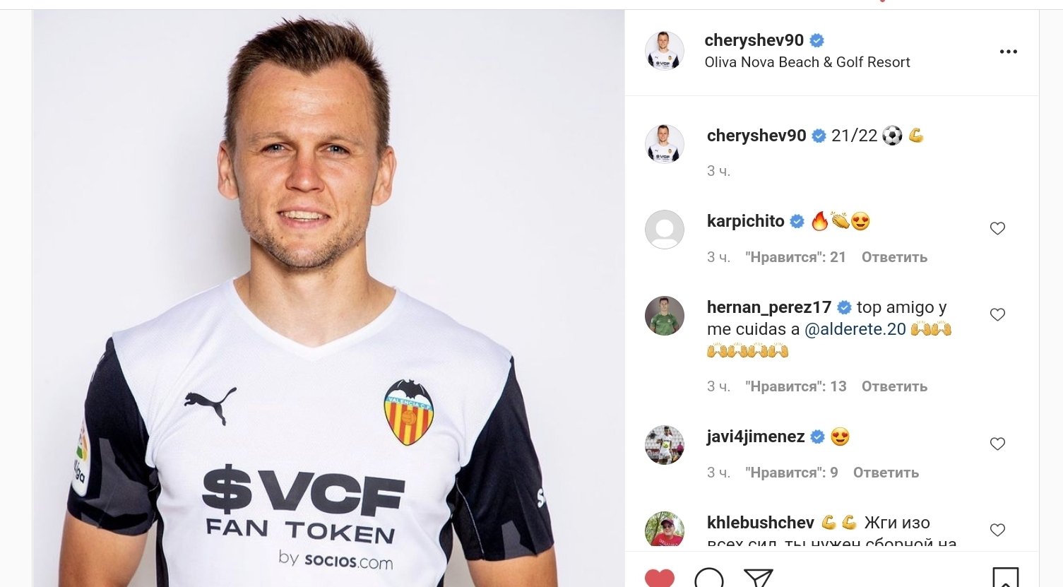 Игрок сборной России и «Валенсии» Денис Черышев показал в своём «Инстаграме»* фотографию новой домашней формы испанской команды.