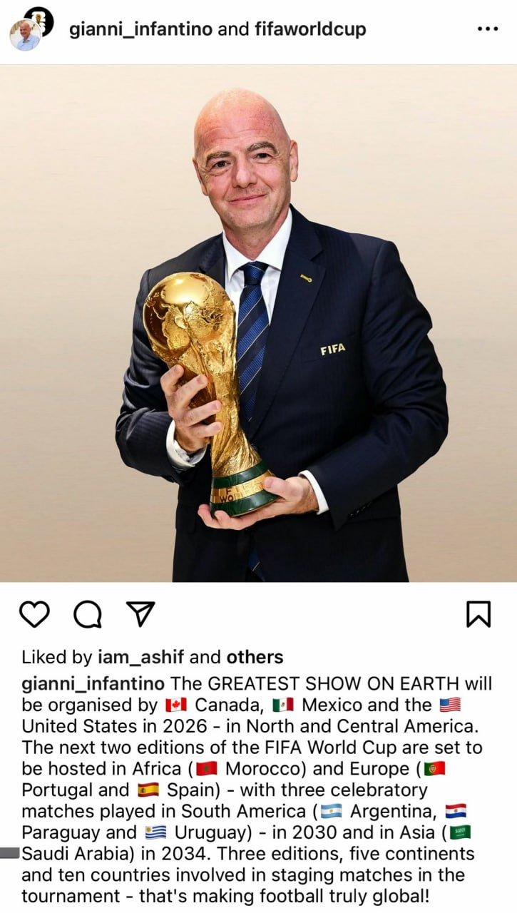 Глава Международной федерации футбола (ФИФА) Джанни Инфантино сообщил, что чемпионат мира в 2034 году пройдёт в Саудовской Аравии.