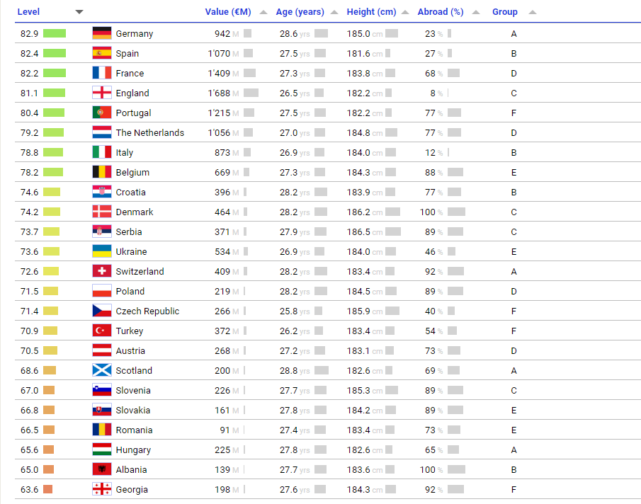 Международный центр спортивных исследований CIES Football Observatory представил рейтинг претендентов на победу на чемпионате Европы-2024.