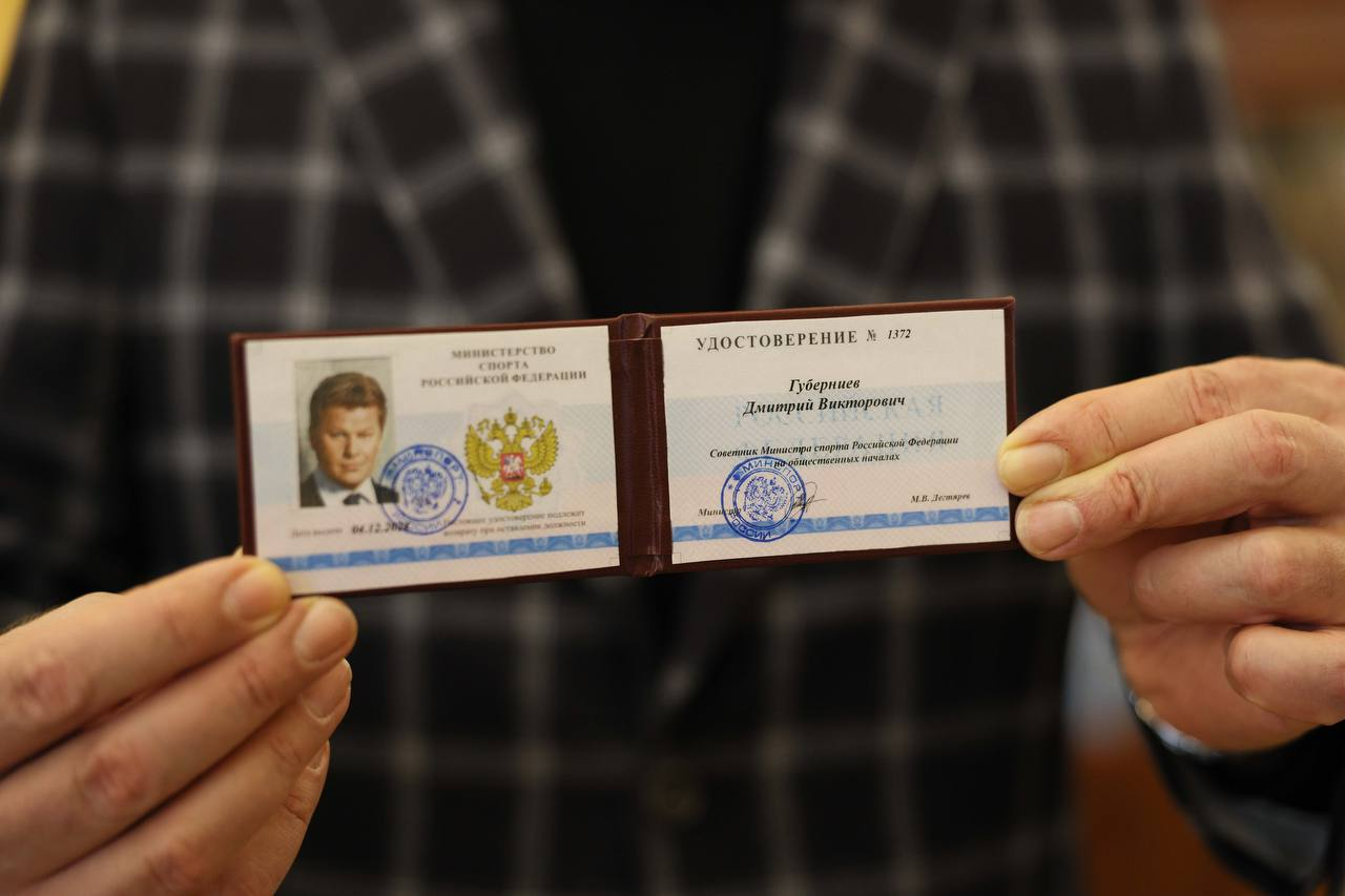 Спортивный журналист и комментатор Дмитрий Губерниев получил удостоверение советника министра спорта России на общественных началах.