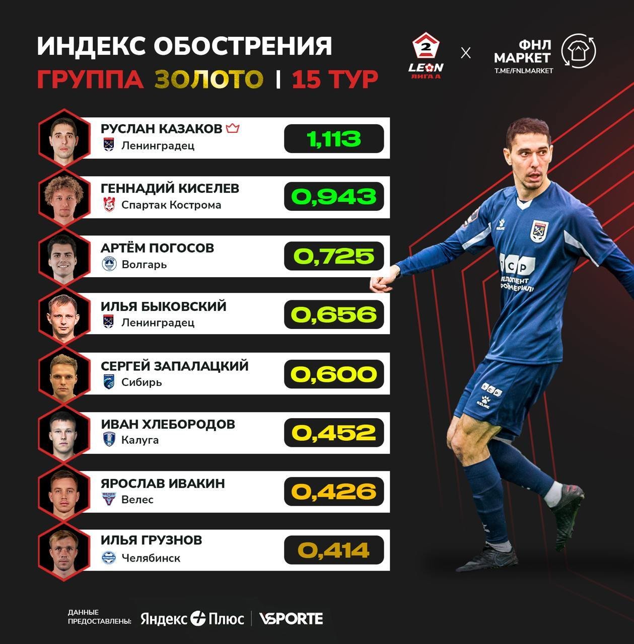 Два игрока «Ленинградца» вошли в топ «Индекса обострения» в 15-м туре группы «Золото» Leon-Второй лиги