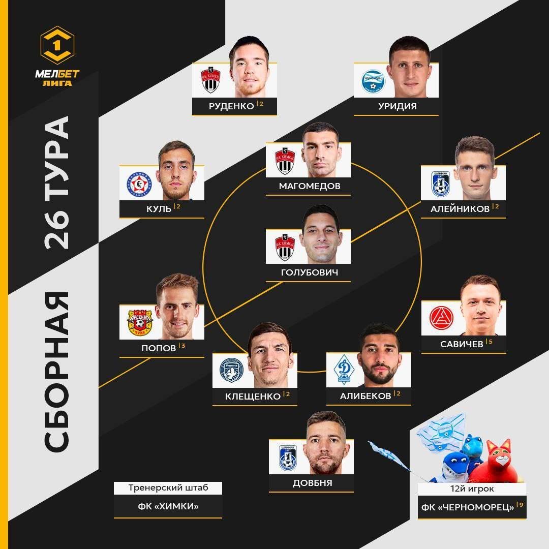 Два игрока «Шинника» — голкипер Александр Довбня и полузащитник Василий Алейников попали в символическую сборную 26-го тура Мелбет Первой лиги.