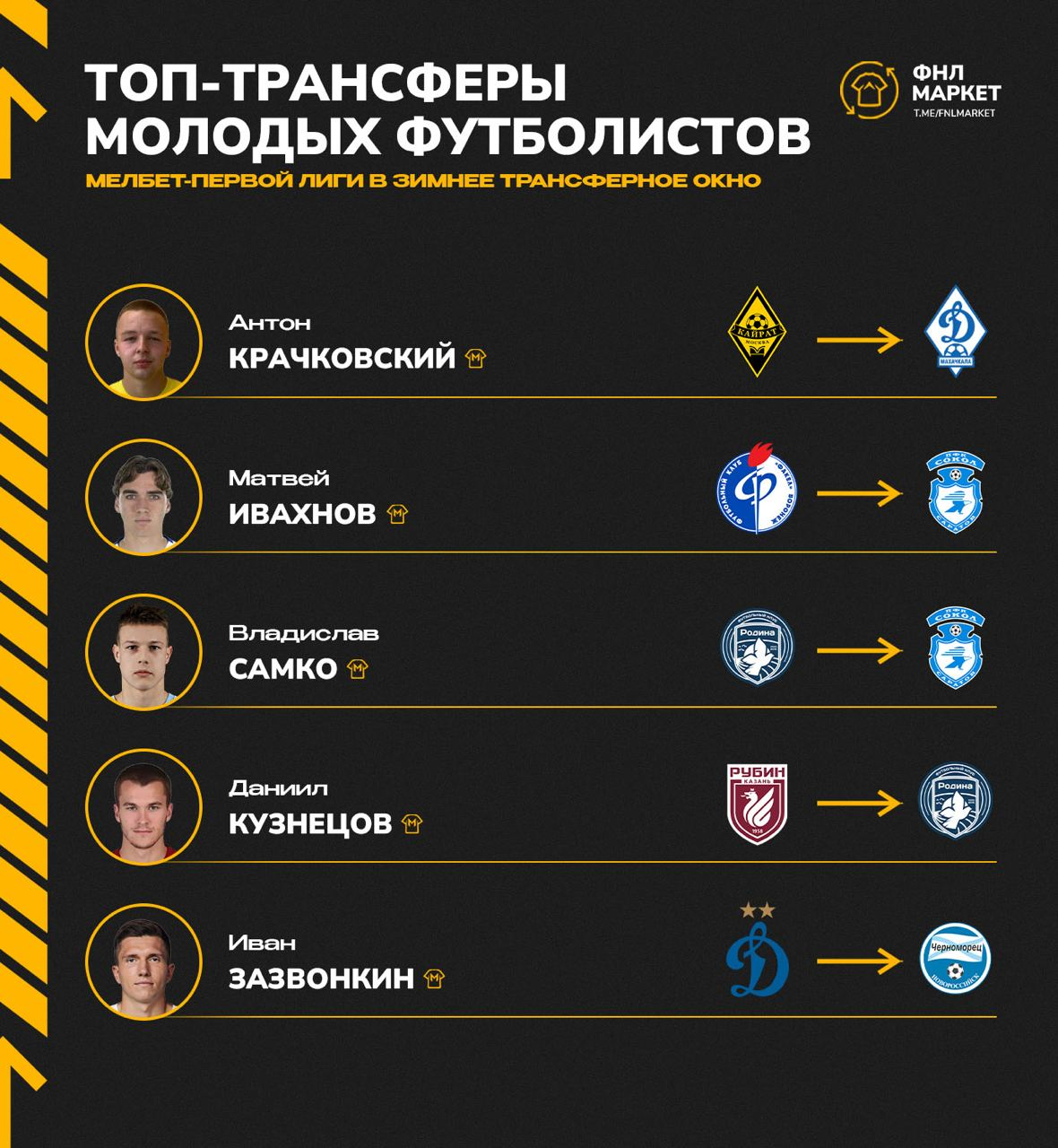 Переходы 20-летнего нападающего Матвея Ивахнова из воронежского «Факела» и 22-летнего форварда Владислава Самко из московской «Родины» в саратовский «Сокол» вошли в топ-5 трансферов Мелбет — Первой лиги в текущем межсезонье по версии телеграм-канала «ФНЛ Маркет».